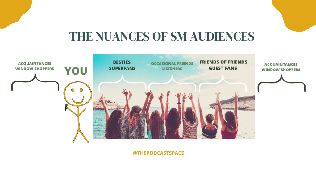 Ana broke down podcast social media audiences into four categories that mirror real-life friendships.