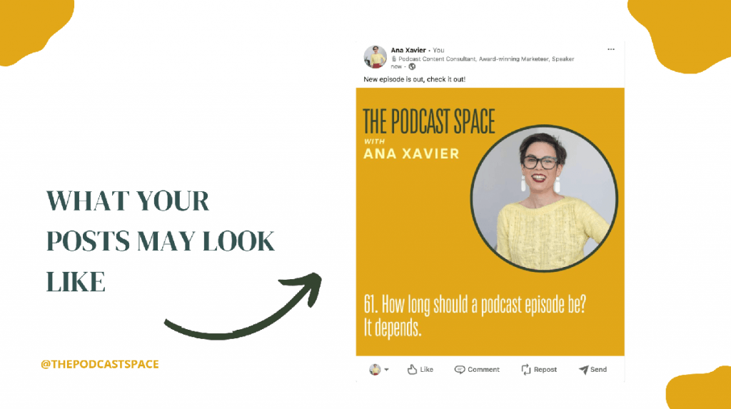 Ana called this one out directly: posting your episode cover art with a caption that says “New episode out now! Link in bio!” is the social media equivalent of tapping a coworker on the shoulder and saying, “Hey, don’t forget about that meeting.”