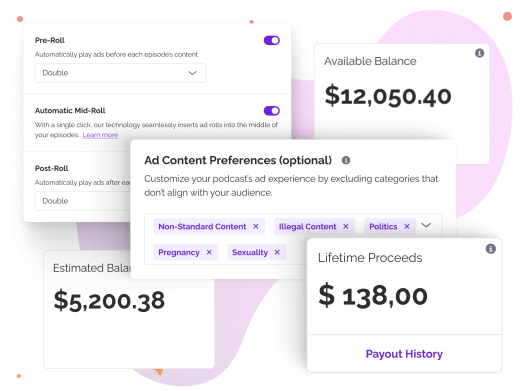 - Todo tu catálogo genera ingresos: Cada episodio que hayas publicado genera ingresos. El contenido nuevo y tu catálogo anterior trabajan para ti, creando un efecto acumulativo a medida que tu programa crece.