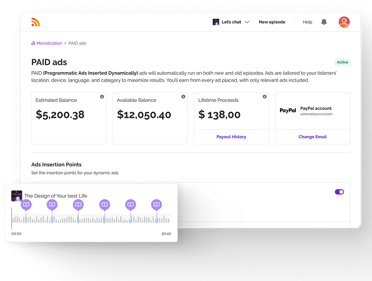 PAID (Anuncios Programáticos Insertados Dinámicamente) es la solución publicitaria de RSS.com que inserta anuncios de audio dirigidos (pre/mid/post-roll) en episodios de podcast, dando a los anunciantes acceso rápido a inventario seguro para la marca a escala.