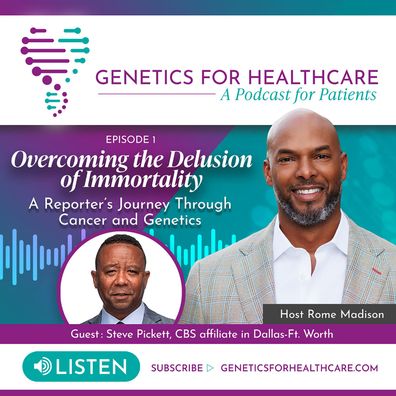 In the first episode of Genetics for Healthcare: A Podcast for Patients, Emmy Award-winning journalist Steve Pickett of CBS Dallas-Ft. Worth shares his experience with back-to-back cancer diagnoses that threatened his life and career. Rome and Steve discuss genetic factors and risks associated with prostate cancer, emphasizing the importance of knowing your family history.