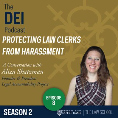 At the Legal Accountability Project, Aliza Shatzman works to ensure that law clerks have positive clerkship experiences, and to provide resources to those who do not. In this conversation, Aliza describes her personal experiences with gender discrimination, harassment, and retaliation by a former DC Judge. Aliza also explains how Title VII of the Civil Rights Act does not extend to federal judicial employees, the need for greater diversity within judicial chambers, and the work LAP is doing to support greater judicial accountability.