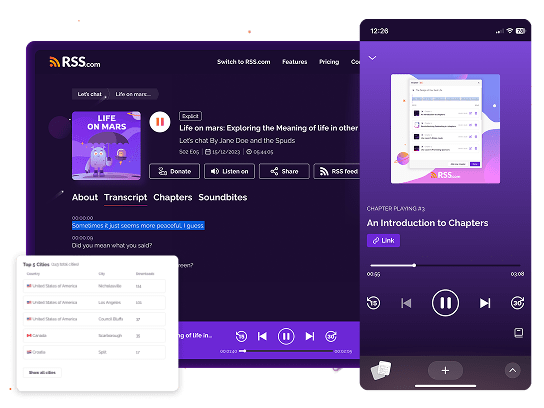 True crime is one of the most popular podcast genres in the world, with millions of fans tuning in every day. RSS.com makes it easy to upload, publish, distribute, and make money podcasting. You'll get the tools and features podcasters need to reach the audiences already searching for true crime podcasts like yours.
