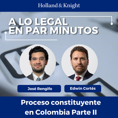 En este episodio de "A Lo Legal En Par Minutos", nuestro socio Edwin Cortés continúa su conversación con José Rengifo, abogado de derecho constitucional, retomando el tema del proceso constitucional en Colombia. Discuten la participación de los ciudadanos del país en el proceso de votación y la incertidumbre sobre el proceso de aprobación de una nueva constitución. También tocan el improbable escenario de un proceso constituyente fuera del Congreso y las diversas hipótesis que se pueden abordar como resultado.