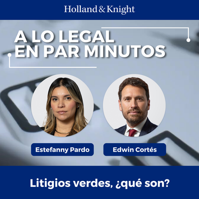 En este episodio de "A Lo Legal En Par Minutos", el socio Edwin Cortés habla con Estefanny Pardo, abogada del área ambiental, sobre los litigios verdes y su relación con la protección del medio ambiente. Como explica la Sra. Pardo, los litigios verdes tienen varios cursos de acción en Colombia, tales como las acciones de tutela y acciones constitucionales para proteger la naturaleza. Ella señala que la columna vertebral de estos litigios son las acciones populares, que pueden ser presentadas por cualquier persona. La conver ...