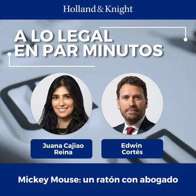 En este episodio de "A Lo Legal En Par Minutos", Edwin Cortés, socio, conversa con Juana Cajiao Reina, abogada del área de propiedad intelectual, sobre la importancia del derecho marcario y el derecho de autor para proteger a los creadores y sus innovaciones. Como ella explica, el derecho de autor protege las creaciones del intelecto humano, mientras que el derecho de marca protege los activos marcarios. Los abogados hacen referencia al ejemplo de Disney, que se asegura de tener protección bajo ambas figuras — el derecho ...