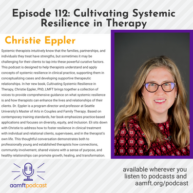 In this episode, Eli sits down with Christie Eppler, PhD, LMFT, to talk about her new book, “Cultivating Systemic Resilience in Therapy.” During this conversation, they discuss how to foster resilience in clinical treatment with individual and relational clients, supervisees, and in the therapist’s own life.