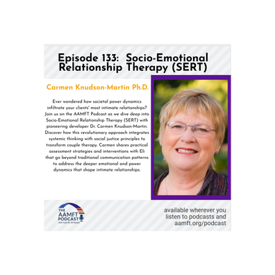 In this episode of the AAMFT Podcast, Eli is joined by Dr. Carmen Knudson-Martin for an in-depth discussion about Socio-Emotional Relationship Therapy (SERT).