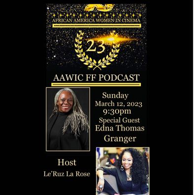 African American Women In Cinema is pleased to announce the 23rd AAWIC FF Podcast featuring Edna Thomas Granger Hosted by Media Personality and Entrepreneur, LeRuz La Rose! You can listen every Sunday evening at 9:30pm for the festival insight, updates and get your tickets to the festival!