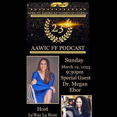 African American Women In Cinema is pleased to announce the 23rd AAWIC FF Podcast Featuring Dr. Megan Ebor Hosted by Media Personality and Entrepreneur, LeRuz La Rose! You can listen this Sunday March 19, 2023 at 9:30pm for the festival insight, updates and get your tickets to the festival!