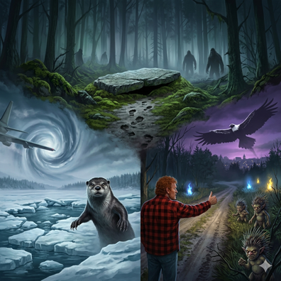 Larry, Amanda, and Sara discuss several "mysterious triangles" characterized by unexplained disappearances and paranormal activity. Larry details the Bennington Triangle in Vermont, where multiple people vanished between 1945 and 1950, giving rise to legends like "man-eating rocks" that swallow hikers and sightings of an eight-foot-tall hairy monster. Amanda explores the massive Alaska Triangle, a 400,000-square-mile area where over 20,000 people have gone missing since the 1970s, amidst reports of magnetic anomalies, cryptids like the "Kushtaka" shapeshifter, and high-profile aircraft disappearances corroborated by radar. Finally, Sara describes Massachusetts' Bridgewater Triangle, a "landlocked Bermuda Triangle" spanning 200 square miles that is home to ghostly orbs, Bigfoot-like creatures, mischievous "Pukwudgies," and massive Thunderbirds wit ...