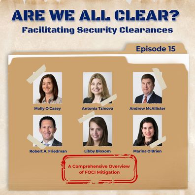 In Episode 15 of "Are We All Clear? Facilitating Security Clearances," host Molly O'Casey and members of Holland & Knight's International Trade Group discuss the complexities of Foreign Ownership, Control or Influence (FOCI) and its implications for security clearances in government contracting. They explain how foreign entities can influence cleared companies, impacting classified contracts, and detail the Defense Counterintelligence and Security Agency's (DCSA) role in overseeing FOCI assessments through the SF-328 form. Mitigation strategies such as proxy agreements and outside directors are highlighted to ensure compliance and safeguard national security.