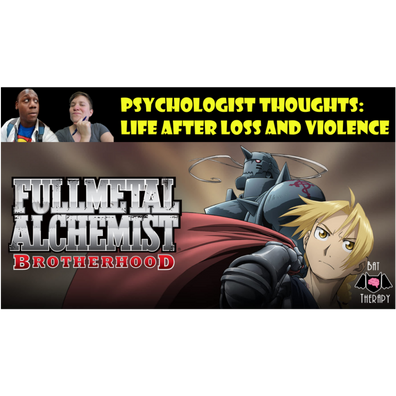 How can we possibly begin to move on from tragedies like death, war, torture, and loss? Hear a clinical psychologist and her nerdy counterpart explore the ways Edward and Alphonse Elrich, Scar, Colonel Mustang and others try to move on in life after the violence they have experienced and, in some cases, participated in themselves.