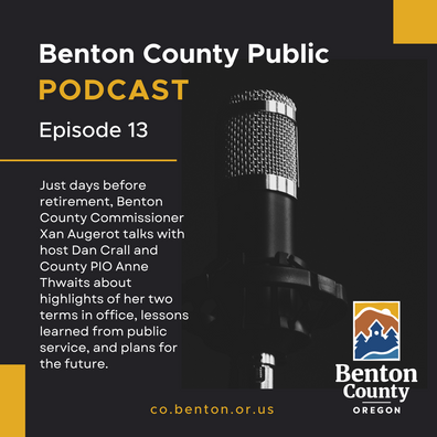 In the last episode of the year, the Benton County Public Podcast commemorates the service of Commissioner Xan Augerot, who is retiring at the end of her second term on the Benton County Board of Commissioners.