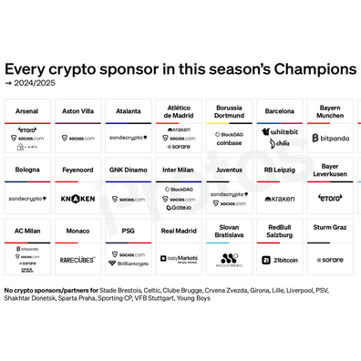 CHART: Every crypto sponsor for the 2024/25 Champions LeagueInformed Crypto News by Protos 01:36RSS feed Listen on ...Share