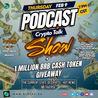 We will also have our weekly BRB Cash Giveaway, giving away 1 Million BRBC Tokens!!