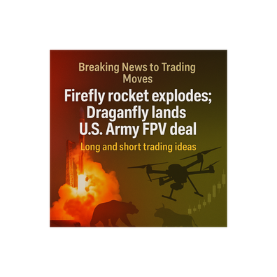 Firefly Aerospace’s Alpha Flight 7 first-stage booster was destroyed during a preflight test in Texas, likely delaying its next Vandenberg launch. Meanwhile, Draganfly won a U.S. Army order for its Flex FPV drones plus embedded manufacturing and training support. $FLY fell hard; $DPRO broke out on the news.