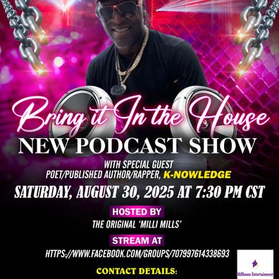 'BRING IT IN THE HOUSE' - is a 30-minute talk/entertainment Podcast Show that spotlights (M)usicians, (E)ntertainers, (A)rtists, and (L)eaders...get your M.E.A.L.! In this episode, host Milli Mills speaks with Poet/Published Author/Rapper, K-NOWLEDGE, Saturday, August 30, 2025, at 7:30 PM CST. Stream live at https://www.facebook.com/groups/707997614338693