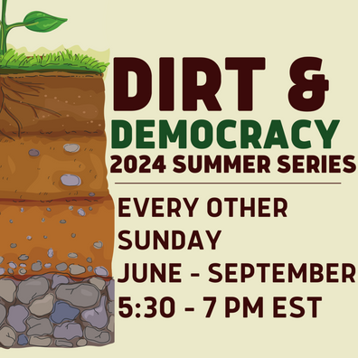 Dirt & Democracy is a summer series focusing on building a democratic, agrarian social movement. Every other Sunday evening, join us online or at in-person watch parties throughout Vermont to learn from agrarian movement leaders from across the globe. This week, Sarah Coffey of the National Lawyers Guild trained us in consensus decision-making processes.