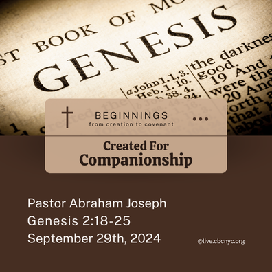 In this installment of our Beginnings Series, Pastor Joseph leads us through God's design of companionship. Join us as we dive into Genesis 2:18-25. Find related discussion questions for this series here: https://cbcnyc.org/sermon-discussion-questions/