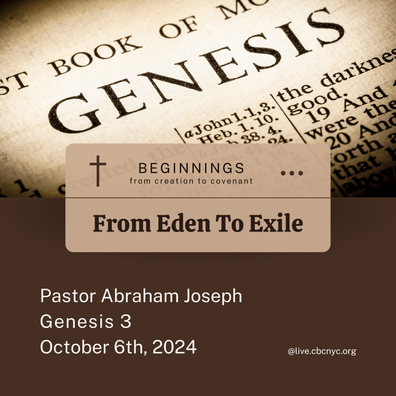 This week, Pastor Abraham leads us through Genesis 3. Going through humanity's rebellion in: From Eden To Exile. Find study questions related to the sermon at: cbcnyc.org/sermon-discussion-questions