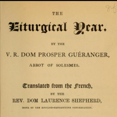 The Liturgical Year is a work written between 1841 and 1875, by Dom Prosper Gueranger, abbot of the French Benedctine abbey of Solesmes. It is a rich theological reflection on the various feasts and seasons of the Church’s liturgical cycle.