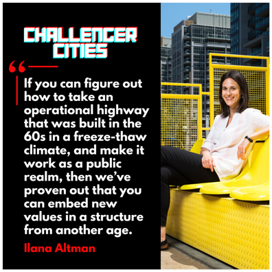 Most cities debate their troubled infrastructure to a standstill. Toronto has been arguing about the Gardiner Expressway for decades. Ilana Altman didn't wait for that debate to resolve. As CEO of The Bentway — a public space and cultural platform built underneath Toronto's elevated waterfront highway — she's been proving that you don't have to tear something down, or wait for it to die, to embed new values in it.