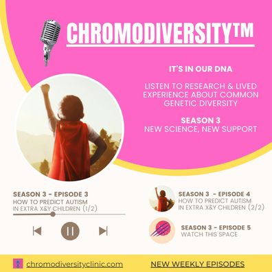 🔴 "Early symptoms of autism spectrum disorder (ASD) in 1-8 year old children with sex chromosome trisomies (XXX, XXY, XYY), and the predictive value of joint attention.*" Although not many medical professionals may be aware, research over the past decade has established that neurodiversities such as Autism are far common in people with an Extra 47th X or Y chromosome than in the average population. At the same time, most are not Autistic.