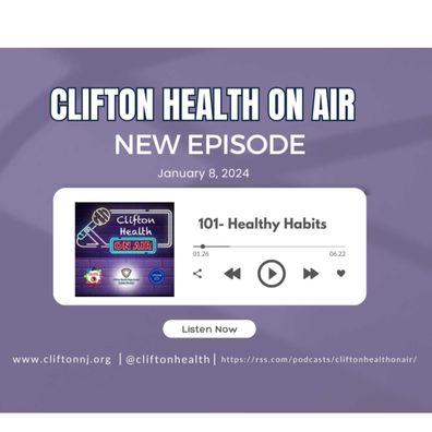 In this episode, Clifton Health On Air’s Host, Danielle Jones, and Co-Host, Lauren Scarfo, sit down with Social Services Team Member, Erika Shyroky, about building healthy habits. The team provides tips on how to maintain a healthy habit. This episode features resources that the Clifton Health Department has to offer; check out our website and social media to learn more about this topic.