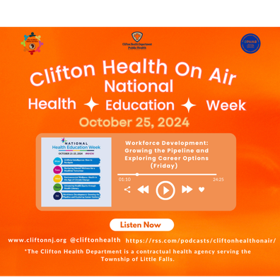 On this bonus episode of Clifton Health On Air, Danielle Jones, Host, and Lauren Scarfo, Co-Host, sits down with John Biegel, Health Officer, and Jenn K., Project Coordinator, to discuss daily theme #5, Workforce Development: Growing the Pipeline and Exploring Career Options (Friday)!