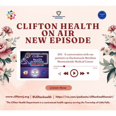 On this episode of Clifton Health On Air, Danielle Jones, Host, and Lauren Scarfo, Co-Host, sit down with Catalina Dubon-Gutierrez, Community Outreach Manager at Hackensack Meridian Mountainside Medical Center to discuss our partnership.