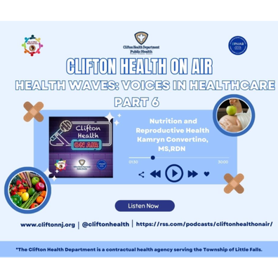 This podcast is not intended to be a substitute for medical advice, diagnosis, or treatment. Seek the assistance of your healthcare provider for medical conditions. The views and opinions of podcast guests do not necessarily reflect the views, polices, or positions of the Clifton Health Department (or City of Clifton).