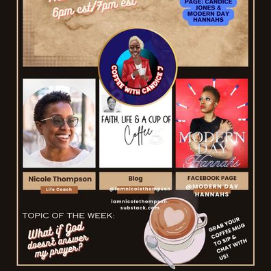 When you've waited for years to get pregnant, your prayers may seems unanswered. God knew who my adopted children would be before they were in their biological mother's womb. We met at the time we needed to meet and become a family. God always hears us and answers in his perfect timing. Our special guest is Nicole Thompson, Life Coach & singer. She'll be sharing words of wisdom and details about her blog entitled "Faith, Life, & A Cup of Coffee." Let's sip and chat!