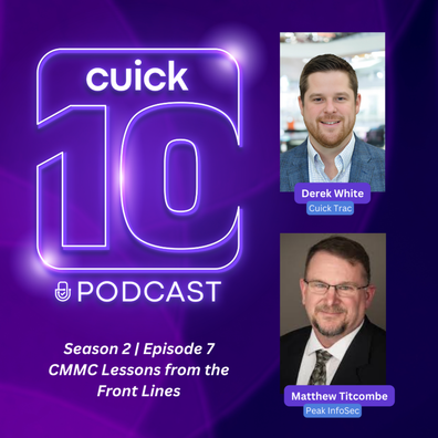 In this episode of the Cuick 10 Podcast, recorded live at #CUICON 2025, Derek White, Chief Operating Officer of Cuick Trac, is joined by Matthew Titcombe, CEO & Sr. Information Security Consultant at Peak InfoSec, to share real-world insights from the early days of CMMC through where things stand in 2025.