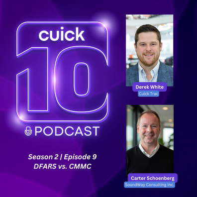 In this episode of the Cuick 10 Podcast, filmed live at #CUICON 2025, Derek White, Chief Operating Officer of Cuick Trac, is joined by Carter Schoenberg, Vice President & Chief Cybersecurity Officer at SoundWay Consulting, to discuss the often-misunderstood divide between DFARS contract requirements and CMMC Level 2 assessments.