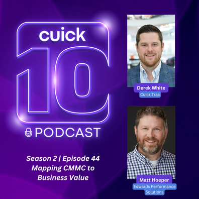 In this episode of the Cuick 10 Podcast, Derek White, COO of Cuick Trac, is joined by Matt Hoeper, Director of Commercial/Cybersecurity at Edwards Performance Solutions, to unpack how cybersecurity leaders can better align their CMMC programs with business goals.