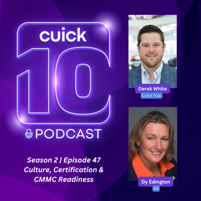 n this episode of the Cuick 10 Podcast, Derek White, Chief Operating Officer of Cuick Trac, sits down with Dy Edington, Director of Information Security at AV, to share lessons from the front lines of achieving CMMC certification. Dy offers a behind-the-scenes look at what it takes to drive a successful compliance program—from cross-functional alignment to hands-on training and executive support.