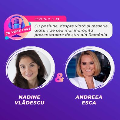 Începem sezonul trei al podcastului „Cu Voce Tare” alături de Andreea Esca, cea mai îndrăgită prezentatoare de știri din România, jurnalist de televiziune, realizator radio, redactor-șef A List Magazine.