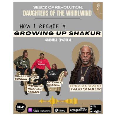 Aiyisha T. Obafemi (@aiyishatheblessed), Princess Mdaiyah Yisrael (@princess_mdaiyah), and Dr. Asantewa Sunni-Ali (@actsofliberation) return with Part 2 of Season 4's "Growing Up" series, joined by special guest Talib Shakur (@tnmobiledetailing). In this powerful episode, Talib discusses his upcoming documentary, How I Became A Shakur, which chronicles the deeply personal journey of discovering in adulthood that he is the son of Dr. Mutulu Shakur, a name he had heard throughout his life from his next door neighbors and larger community. He reflects on legacy, identity, honor, and the responsibility of protecting the Shakur name.