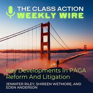 This week's episode of the Class Action Weekly Wire features Duane Morris partners Jennifer Riley and Shireen Wetmore and special counsel Eden Anderson with their discussion of the key trends analyzed in the 2025 edition of the Private Attorneys General Act Review. Litigation brought under the Private Attorneys General Act (“PAGA”) poses unique challenges for employers operating in California, and 2024 was no exception; the past year saw major developments in the legislative reform of the PAGA as well as significant rulings pre- and post-reform shaping the landscape for these types of representative actions in 2025. A full episode transcript is available on our blog. Bookmark or download the Private ...