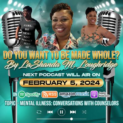 It is my hope and goal in going forth with podcasting to bring awareness to dark subjects that we as a community don’t like to discuss. The stigma of the negativity associated with mental health and professional counseling has got to go! It all works hand in hand - your physical, mental, spiritual, and emotional health. Nobody wants to discuss mental health until something tragic happens. By then it’s too late. Access your resources. Be a safe space and don’t sit in judgement of those in need. Do you want to be made whole?