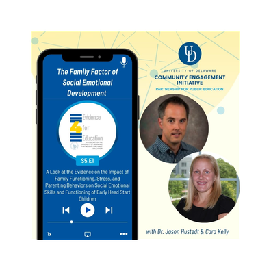 On this episode of the E4E podcast, we catch up with Dr. Jason Hustedt, an applied child development researcher at the University of Delaware College of Education and Human Development’s Department of Human Development and Family Sciences and Cara Kelly, a fifth-year Ph.D. candidate in the Department of Human Development and Family Sciences. Jason specializes in early childhood policy and practice. His research focuses on three lines of work: research with caregivers and children on parent-child interactions in low-income families, children and early care and education providers to investigate outcomes of public early childhood programs and school readiness, and research aimed at understanding the implications of state and federal early childhood policies.