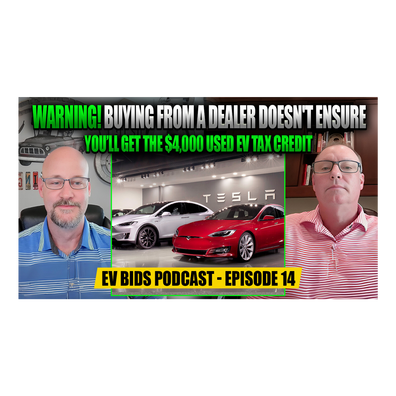 In this EV Bids Podcast episode we cover the importance of ensuring that you’re actually going to receive the $4,000 tax credit after you purchase a Used EV. There’s a lot of misinformation coming from dealers who don’t understand the process, and there are going to be some really unhappy consumers when they do their taxes at the end of the year only to find out they can’t receive the $4,000 tax credit!