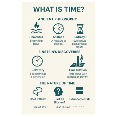 "What Is Time?" offers a comprehensive overview of the nature of time across multiple disciplines. The conversation, featuring hosts Maya, explores how time has been conceptualized, starting with ancient philosophy—discussing thinkers like Parmenides and Augustine who questioned whether time is real or merely a measure of change. The script then transitions to modern physics, contrasting Newton's absolute time with Einstein’s theories of relativity, which establish that time is elastic and interwoven with spacetime, affected by gravity and motion. Finally, the discussion incorporates thermodynamics (explaining the "arrow of time" through entropy) and quantum theories, concluding that while our subjective feeling of time’s "flow" might be a neurological construct, ...