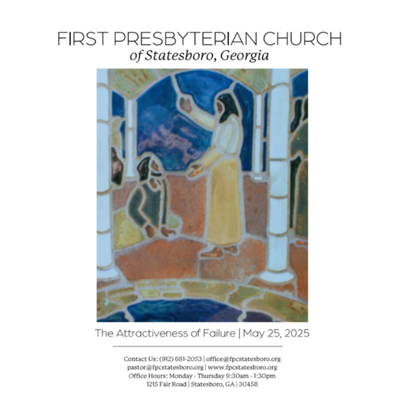 The attractiveness of failure | May 25 2025 Contact Us: (912) 681-2053 | office@fpcstatesboro.org pastor@fpcstatesboro.org | www.fpcstatesboro.org Office Hours: Monday - Thursday 9:30am - 1:30pm 1215 Fair Road | Statesboro, GA | 30458
