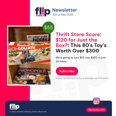 Explore the best items to buy at yard sales and thrift stores to resell on eBay for a profit. Flip Weekly is a podcast that follows amateur flipper Mat, featuring his top picks and (hopefully) success stories once a week.