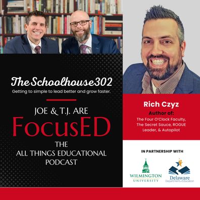 The episode features Rich Czyz of Yardville Elementary, co-founder of 4oClockFaculty, and author of Autopilot: Practical Productivity for School Leaders.
