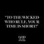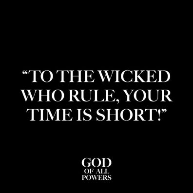 “To The Wicked who rule, your time is short! All who are exalted shall be brought to nought! For I will set up a new rule, one that has not been before! Yes a righteous rule will be established in the earth, and I will delight in that which I create saith The Lord.