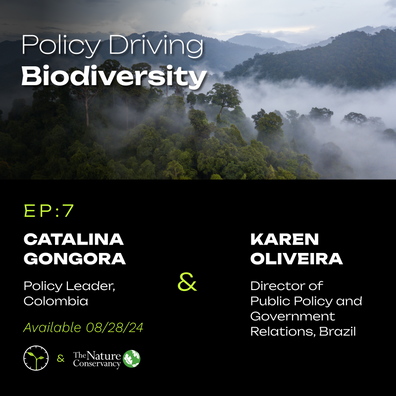 In the seventh (and final) episode of our series, we discuss public policy driving biodiversity with Catalina Gongora, Policy Leader in Colombia for The Nature Conservancy, and Karen Oliveira, Director of Public Policy and Government Relations in Brazil for The Nature Conservancy.