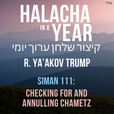 Siman 111 - Checking for and Annulling ChametzHalacha in a Year by Rabbi Yaakov TrumpS01 E110 13:21RSS feed Listen on ...Share